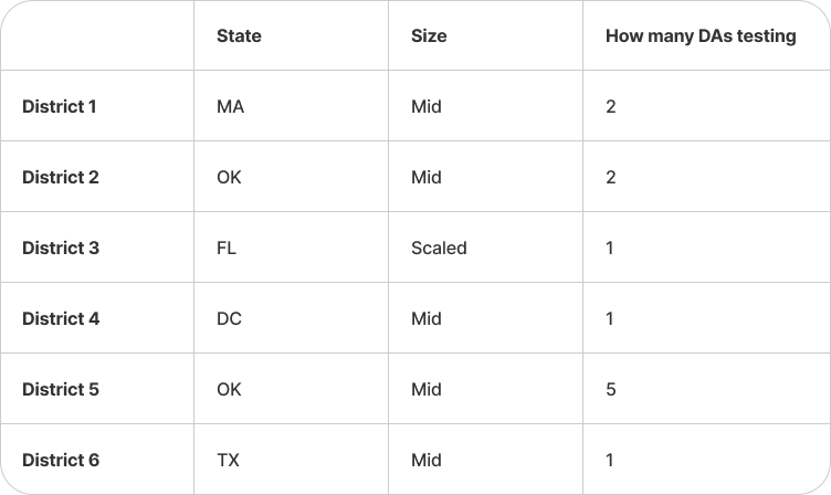 The purpose of setting goals and criteria was to make sure we had the information we needed to identify which type of DA would be most likely to find value in AI-powered analytics so we could target our outreach for testing a proof of concept.