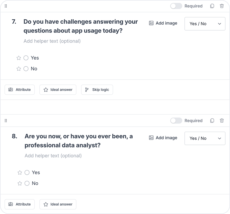 Pre and post surveys to compare what admins reported they wanted to achieve with AI Analytics with what they experienced.
