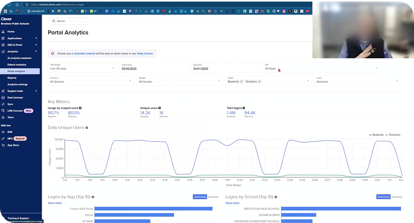 Personally, uses Clever to monitor app usage at their school district and uses/pulls the data themselves.