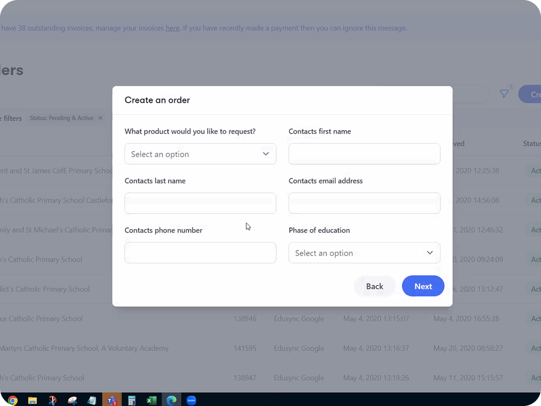 A reseller shows me a flow they use to create an order with one of their current edtech vendors