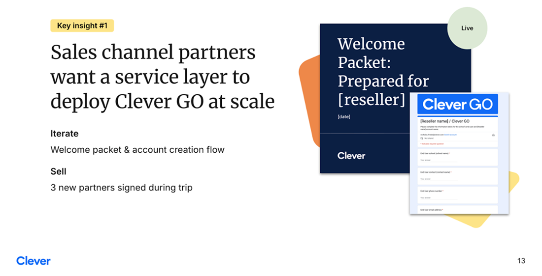 School and reseller visit insights informed product and process improvements for Clever GO, which:
