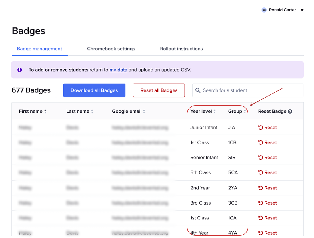 Insight: Trouble organizing badge printouts by grade/class and Badges aren’t printing at the correct size.
